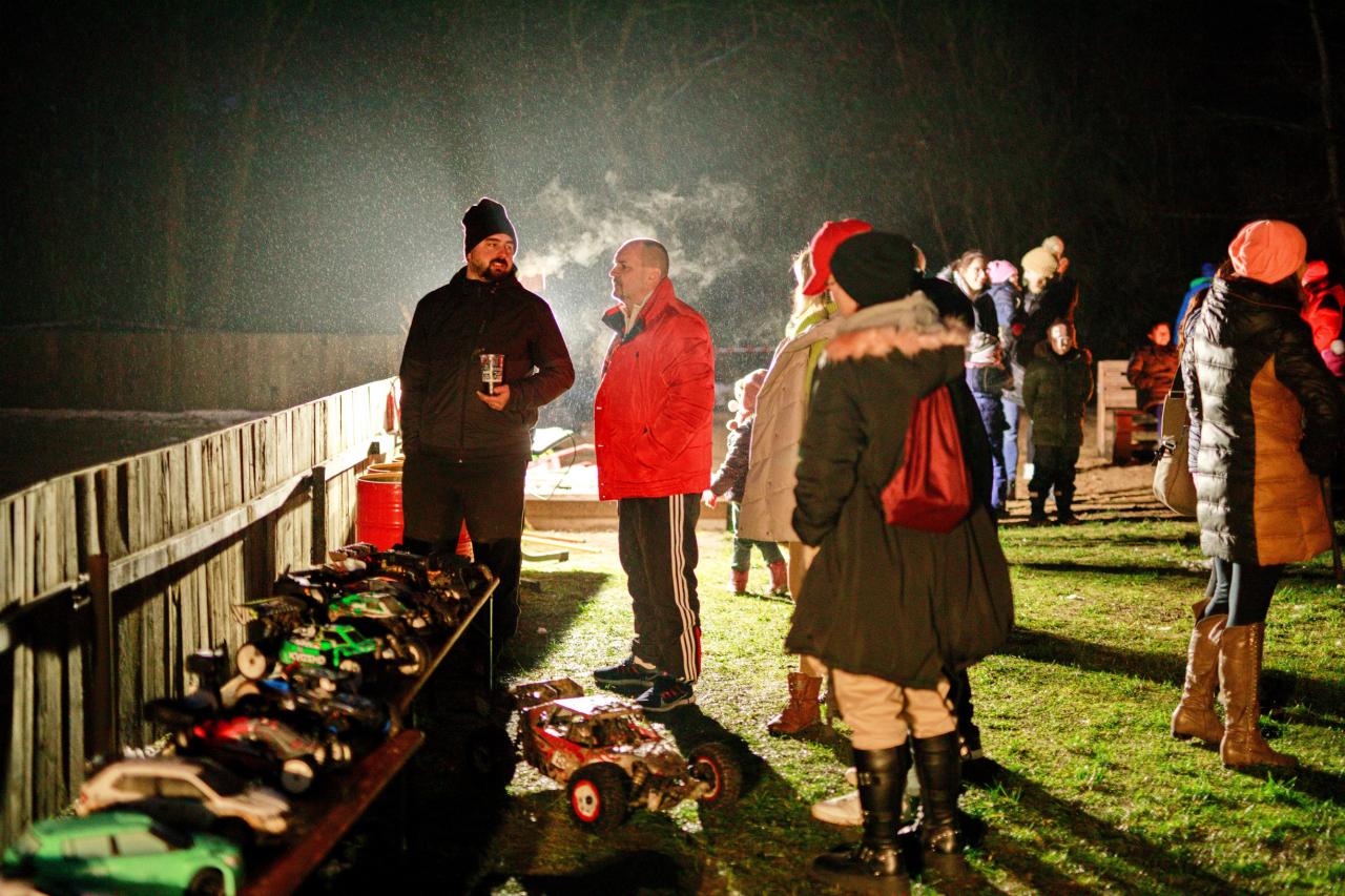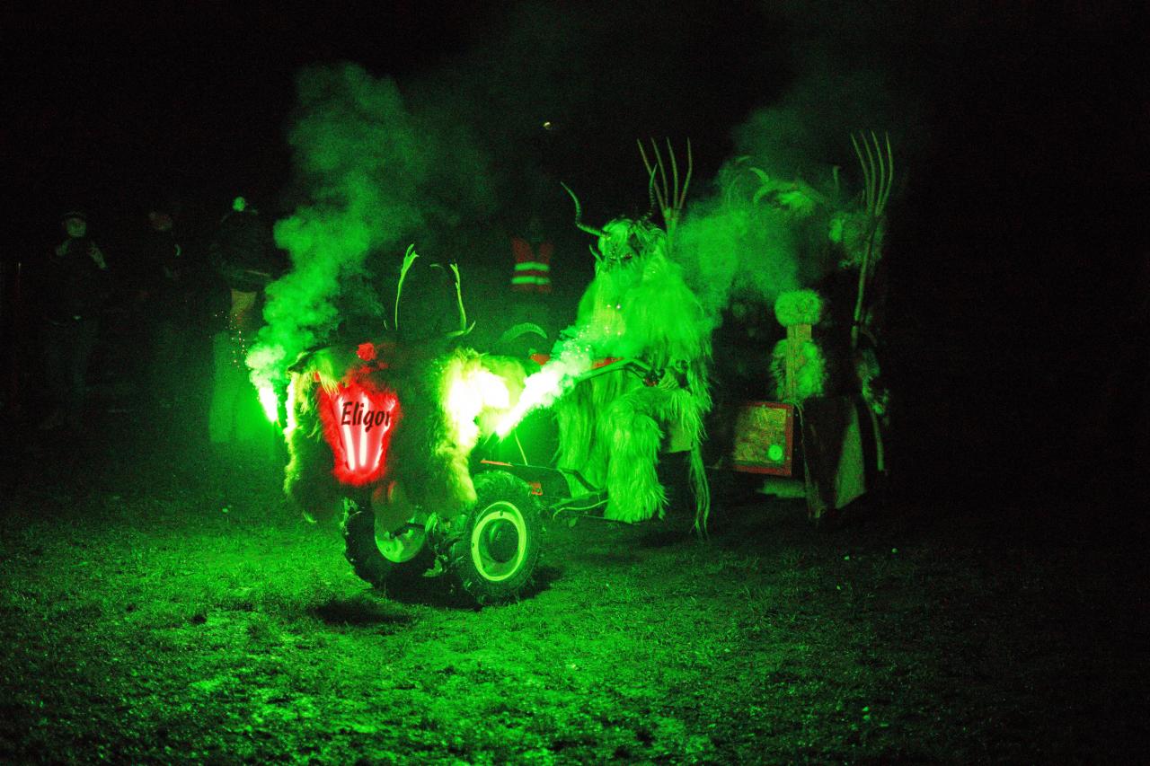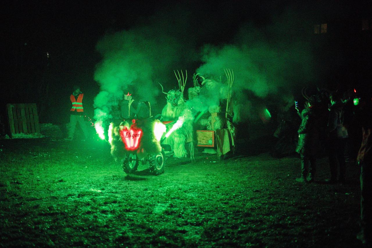 Příjezd skupiny Eligor Mladá Boleslav (Krampus) na pekelném voze na RC dráhu v Dolním Cetně
