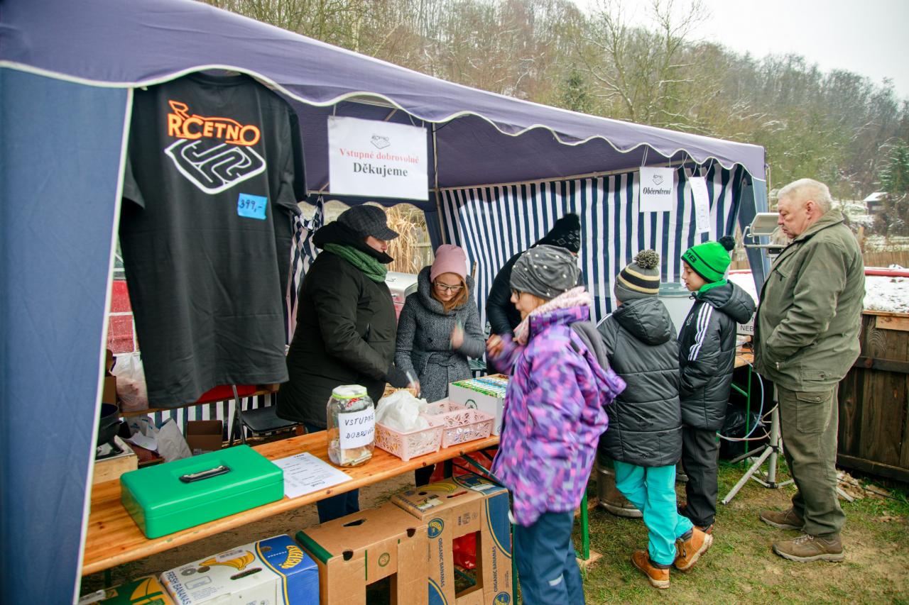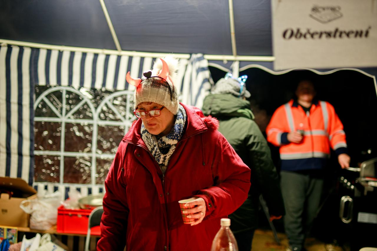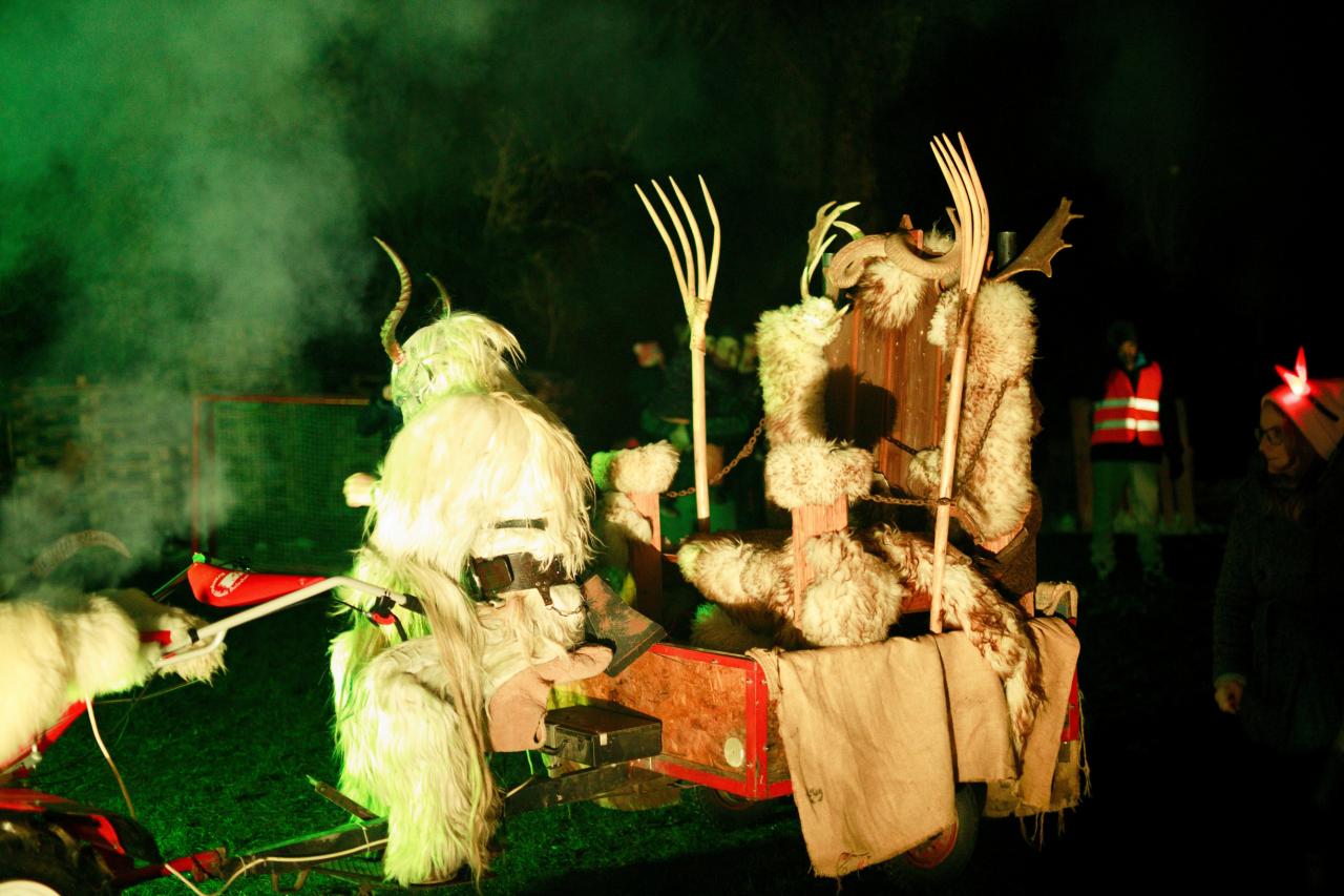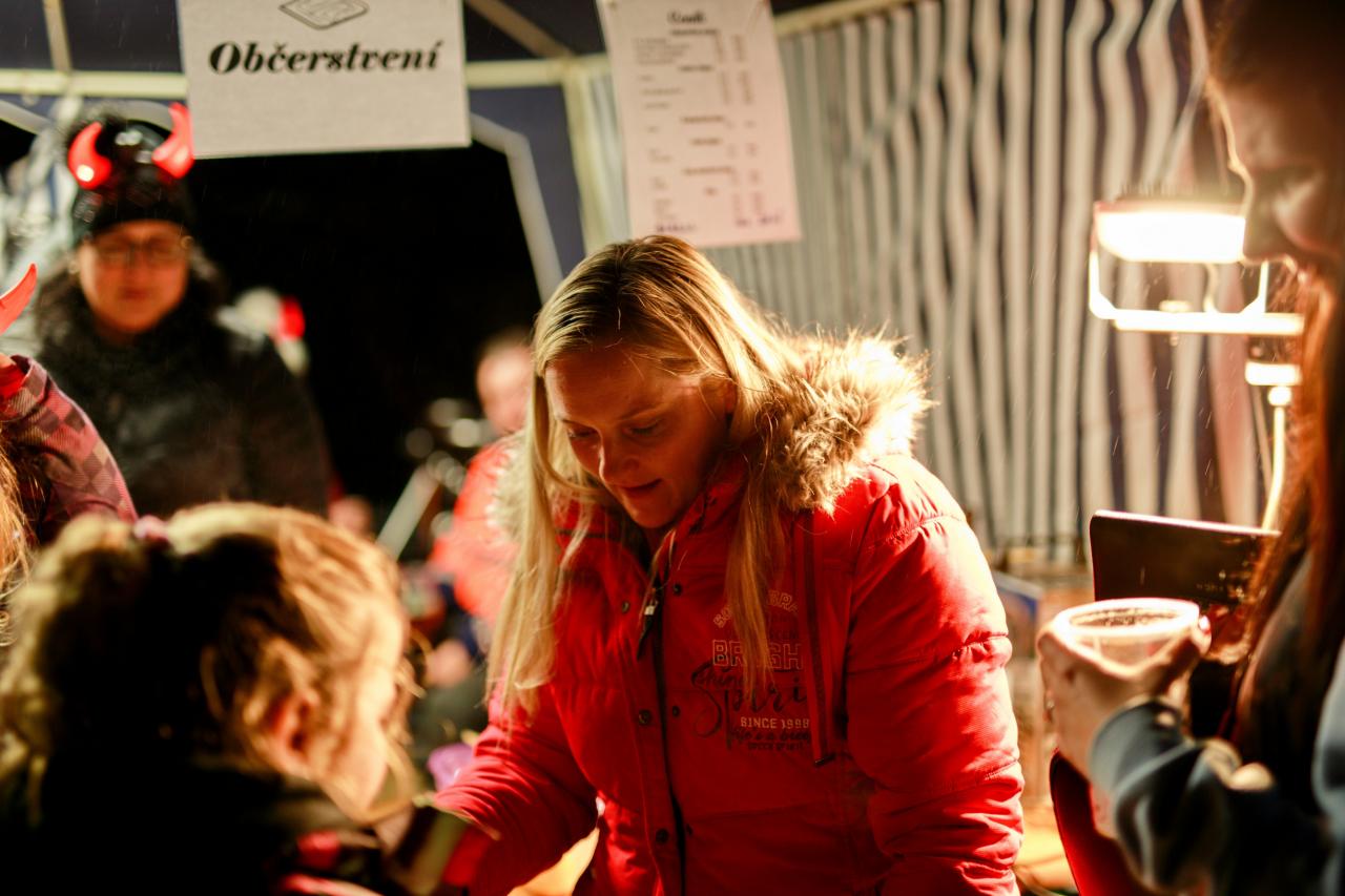 Příjezd skupiny Eligor Mladá Boleslav (Krampus) na pekelném voze na RC dráhu v Dolním Cetně