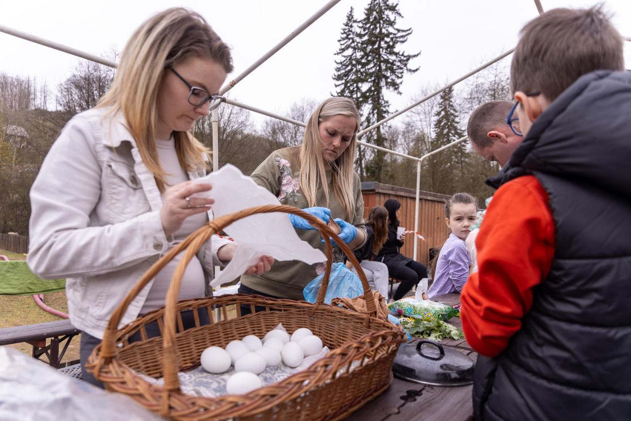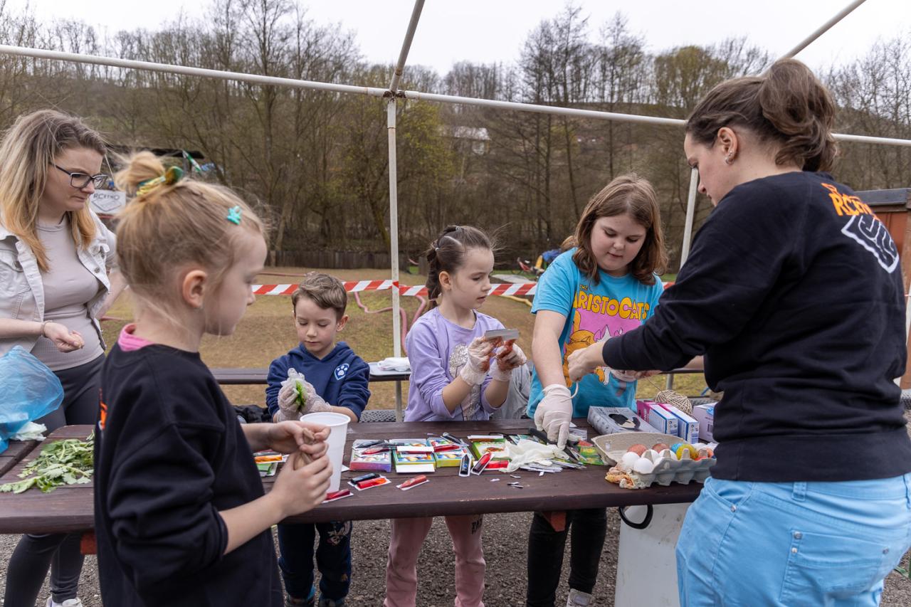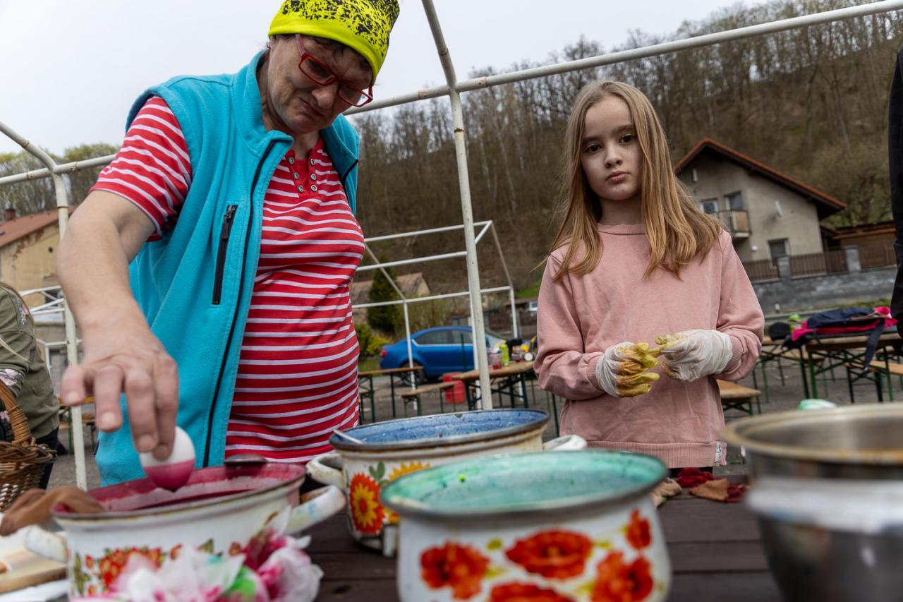 Řehtání, velikonoční tvoření, barvení vajíček, platení pomlázek.